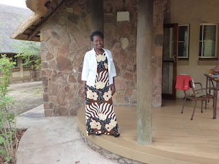 Ter illustratie hierbij nog een foto van een van de medewerksters Kruger, voor wie het allemaal bedoeld is en een foto van een gelukkige Afrikaanse, die met blije trots de nieuwe uitbreiding van haar garderobe showt.