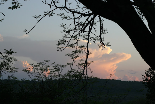 Vandaag staat de Mahonie loop, een relatief korte ronde van 25 kilometer rond Punda Maria, op het programma. Een fraai diep roodgekleurd aarden zandpad slingert door de heuvels rond het kamp. Steeds nieuwe vergezichten en allerlei soorten prachtige, vol uitgegroeide bomen maken de tocht verrassend en gevarieerd. Veel eeuwenoude indrukwekkende Afrikaanse baobabs, die er van een afstand al echt uitspringen in het landschap. Als imponerende natuurmonumenten regeren ze de regio. Van de vruchten wordt gezegd dat ze op hangende dode ratten lijken. Apen eten die vruchten, vandaar de naam ‘apenbroodbomen’. Mensen eten ze ook, vers of gedroogd en dan later geweekt in water of melk. De bomen zouden meer dan duizend jaren oud kunnen worden. Om dat vast te kunnen stellen wordt de C14-datering methode gebruikt, omdat dat op gebruikelijke manier, met groeiringen, niet goed mogelijk is. We komen verder nauwelijks auto’s tegen op de Mahonie loop. Er waait een droge warme wind, vol met zware bloesemgeuren. Een strak stralende zon houdt de temperatuur constant boven de 30 graden.