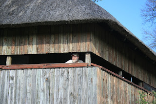 “Aan het water is het steeds een komen en gaan van alle soorten wild. De tientallen harems met zebra merries, die er drinken trekken de die hengsten aan. In hoog opstuivende zandwolken vechten de hengsten onderling om in de gunst van een van de merries te komen, waarbij ze op niet mis te verstane wijze op hun strepen kunnen gaan staan. Ze kunnen daarbij gemeen trappen en bijten. Of die voortplantingsdrift van de zebra’s ook tot vruchtbaarheid komt, is nog niet te zeggen, in ieder geval strijken wel de eerste ooievaars neer aan de waterkant. En veel struisvogels. Een struis koppel heeft het helemaal voor elkaar: met 10 kuikens van zo’n 80 cm hoog in hun kielzog, paraderen ze parmantig in het rond.”